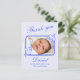 Vielen Dank, dass Sie Geburtshinweis Foto Collage Card. Elegantes minimalistisches Design mit dem Foto Ihres Neugeborenen und einem einfachen Text. Personalisieren Sie es mit dem Foto Ihres Babys, dem Namen, den Geburtsstatistiken oder ändern Sie den Hintergrund. Auf der Rückseite können Sie Ihre Danksagung hinzufügen.