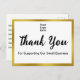 Front: Oben befindet sich ein Display, das Sie durch Ihr Logo ersetzen können. Vielen Dank erscheint in einem großen schwarzen Skript. Eine Zeile Text zeigt unten ist danke. Sie können diesen Text bearbeiten, um eine benutzerdefinierte Nachricht zu zeigen, falls gewünscht. (Angezeigt: Für die Unterstützung unseres kleinen Unternehmens) Die Vorderseite hat auch eine Imitate (nicht Folie) Goldgrenze. Zurück: Die Rückseite hat 6 Zeilen schwarzen Text. Sie können den Text bearbeiten oder löschen, um eine benutzerdefinierte Nachricht für Ihr Publikum zu erstellen.