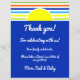 Babydusche dankt Ihnen für die Feier mit uns, bitte nehmen Sie einen Gefallen als ein Zeichen unseres Dankeszeichens. Hier kommt das passende Design zur Son Summer Stripes Baby Shower Collection. Ein modernes, lustiges und farbenfrohes Design für eine begehrte Sommerdusche mit aufsteigender Sonne. Ein fröhlicher und lustiger Schriftart für den individuellen Text. Design ist Teil der Summer Stripes Kollektion, die Einladungen für Babyduschen, Windeln, Bibliotheksgehäuse, Party, Dekorationen, Geschenke und vieles mehr beinhaltet.