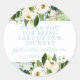 Vielen Dank, dass Sie Teil unseres Reisethemas sind und sich für Etikettenaufkleber für eine Hochzeit in Urlaubsort- oder Reise-Thema-Verlobung oder Brautparty mit Vintagem blau-grünem Kartenhintergrund mit weißem boho blumigen Rahmen bedanken. Entdecken Sie die koordinierte Party-Dekoration im Paper Traube Destinations Zazzle Shop.
