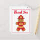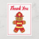 Ein Dankeschön an euch Postkarte für Feuerwehrleute. Die Postkarte zeigt einen Lebkuchenfeuerwehrmann in roter Uniform und Hut. Vielen Dank an eine Person, die Ihnen und anderen so geholfen hat.