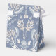 Ein französisches Land Zelt-Gefallen-Box in Blau mit floralen Damaskus-Design mit einem Dankeschön-Center