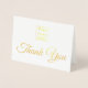 Das echte Goldfolienskript lautet "Danke" auf der Vorderseite der Karte. Über dem Text befindet sich ein Bild, das Sie durch das Logo Ihres Unternehmens ersetzen können. Das Innere dieser Dankeschön-Karte ist leer für Ihre handgeschriebene Nachricht.