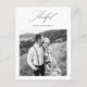 Moderne minimalistische Schwarz-Weiß Hochzeit ein Foto danke Postcard bietet elegante dankbare Kalligraphie-Skript und ein Foto mit einem maßgeschneiderten personalisiert Dankeschön-Nachricht und Rücksendeadresse auf der Rückseite der einfachen, frisch verheirateten Dankeschön-Karte.