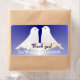 Lieblich blau Danke - Hochzeitslabel mit zwei kleinen Vögeln. Anpassbarer Text