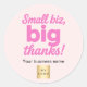Weich rosa Hintergrund, rosa Text: Kleines Biz, großer Dank! Personalisieren Sie Ihren Firmennamen und Ihr Firmenlogo und fügen Sie diese hinzu