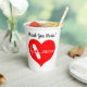 Vielen Dank an eine Krankenschwester und zeigen ihnen, wie sehr Sie ihre harte Arbeit und Hingabe mit diesem lustigen, maßgeschneiderten Papier Party Becher schätzen! Dieses Design zeichnet sich durch ein großes, rotes Herz mit einem Herzschlag, einem niedlichen Verband, "Krankenpflege" und "Danke Krankenschwester!" Text auf beiden Seiten des Bechers aus. Es wird auf einem weißen Hintergrund angezeigt, aber Sie können Ihre Lieblingsfarbe aus der Farbpalette auswählen. Fügen Sie auf Wunsch Ihre eigene spezielle Nachricht hinzu. Genießen Sie diesen lustigen Becher in einem Party für eine Krankenschwester oder Krankenschwester. Ideal für Krankenschwestern, Krankenschwestern oder zu jeder Zeit!