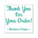 Dieses wertvolle Gummi Briefmarke Design beinhaltet die Nachricht "Vielen Dank für Ihre Bestellung!" und einen individuellen Firmennamen. Es kann von einem beruflichen, einem Unternehmen, einem Unternehmen oder einer Organisation genutzt werden, um Kunden oder Kunden für ihr Geschäft zu danken.