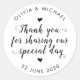 Ein klassischer Schwarz-Danke-Hochzeitsaufkleber mit dem Titel "Danke, dass Sie unseren Sondertag teilen" in einer rustikalen, modernen und eleganten Schriftart-Kalligraphie. Sie können es einfach mit Ihren Namen und Hochzeitsdatum personalisiert.