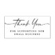 Briefmarke aus Gummi mit dem Text "Danke" in einem handgeschriebenen Schriftart, und anpassbarer Text unten "für die Unterstützung unseres kleinen Unternehmens".