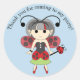 Niedliche Ladybug-Rundkreiskleber mit dem Text "Danke, dass du zu meinem Party gekommen bist!", das ist ein super süß klebriges Etikettendesign. Die Aufkleber können für Geburtstagsparty Gunst Taschen und Boxen, danke Schreibwaren und passende Umschlag Aufkleber verwendet werden. Diese Fee ist in einem süß-roten und schwarzen Polka Dotress gekleidet, mit kleinen Flügeln und einer Dame bug wand. Siehe Entwürfe in der Kategorie Ladybug Fairy des Fairy Marie Stores: www.zazzle.com/fairymarie*