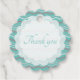 Aquamarines und weißes Design mit verschleißenden Formen & anpassbarem Text auf der Vorderseite: "Danke". Auf der Rückseite ist mehr Text, den Sie bearbeiten oder löschen können.