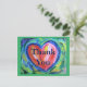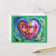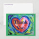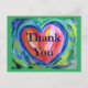 Die Postkarte weist darauf hin, "Danke." Die Malerei weist ein farbenfrohes rotes Herz mit glimmernden weißen und goldenen Akzenten auf. Das Herz ist blau umrissen und hat einen weichen grünen Hintergrund. Dieses Gemälde ist eine Hommage an die Hoffnung in Ihrem Herzen, wenn die traurige Blues einen umgibt, aber auf eine grüne Erneuerung drängt. inspirierendes Kunstwerk von Laurel Latto für gemeinnützige DonnaBellas Angels. Aufgabe der gemeinnützigen Organisation ist es, inspirierende Kunst für psychische Gesundheit zu bieten. Das Motto lautet "Medizin heilt den Körper, Kunst heilt das Soul". Weitere Informationen finden Sie online unter DonnaBellasAngels.org.