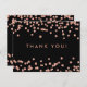 Elegante Hochzeit Danke Note Design mit Rose Gold Imitate Glitzer Confetti Schwarz und Sondertext.