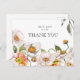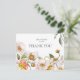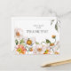 Diese elegante Dankeskarte besticht durch ein hübsches Blumendesign mit sanften Aquarellfarben in Pfirsich, Rosa und Weiß, sowie mit zarten grünen Blätter. Die Blume werden unten auf der Karte platziert und bieten einen wunderschönen Rahmen für den Ausdruck "DANK YOU" in einem klassischen Serif-Schriftart. Über der Nachricht gibt es Platz für personalisierte Details wie die Namen des Paares und das Veranstaltungsdatum. Diese Karte ist perfekt für Hochzeiten, Brautpartys oder besondere Anlässe geeignet und vereint zeitlose Eleganz mit einer natürlichen, botanischen Ästhetik.