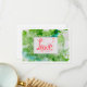 3,5" x 5" notecard, halbglänzende Oberfläche, quadratische Ecken, plus Umschläge. FRONT: Liebe motif Set vor grünem alkoholfarbenen Hintergrund. BACK: Danke, dass Sie unseren besonderen Tag mit uns gefeiert haben. Ein Platz, um Nachrichten und Signaturen hinzuzufügen.