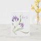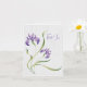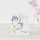 Lila Iris-Blume auf weiß gekalktem Holzhintergrund für danke. Alle Texte können bearbeitet werden.