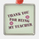 Geben Sie Ihrem Fachlehrer ein Urlaubsgeschenk, das ihm lasse zu wissen, wie viel sie schätzen. Dieses Design enthält die Worte "danke, dass du mein Lehrer bist" in rosa und lila Mosaik zusammen mit hellrosa Blume. Dieses Urlaubssornament bietet auch einen hellgrünen Hintergrund, der auf Wunsch angepasst werden kann.
