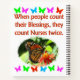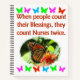 Diese gewidmete Krankenschwester wird diesen hübschen Schmetterling "Wenn die Leute ihre Segnungen zählen, könnten sie zweimal Krankenschwestern" Foto-Design von www.zazzle.com/myheavenlyblessings Ihre Nummer eins Krankenschwester wird dieses wertvolle Pflegedesign auf T-Shirts, Tasse, Trinkgeschirr, Wohngestaltung und liebevolle Geschenke schätzen. Lass deiner wunderbaren Krankenschwester, dass sie die Welt zu dir meint und ein Engel ist, der von Gott gesandt wird. Alle unsere glücklichen Pflegedesigns können mit einem Namen, Datum oder Event angepasst und personalisiert werden. Dieses wertvolle Geschenk für Krankenschwestern ist ideal für Ferien, Geburtstage und jede Gelegenheit.