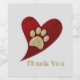 Vielen Dank Red Heart Gold Paw Print Wertschätzung Weinetikett