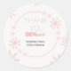 Ein Winterwunderland Vielen Dank für einen Aufkleber für einen einjährigen Geburtstag mit Rose goldfarben pink und Schneeflocken und eine personalisierte Nachricht. Der lustige Text sagt: "Danke, dass du viel schneist". Perfekt für die 1. Winterfeier .