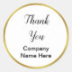 Oben, vielen Dank erscheint in schwarzem Drehbuch auf diesem weißen und Imitat goldenen Aufkleber. Am unteren Rand sehen Sie einen Text, den Sie durch den Namen Ihres Unternehmens ersetzen können. Die goldene Optik-Grenze ist eine künstlerische Darstellung (nicht Folie). Sie können den Text nach Belieben bearbeiten oder löschen.