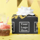Großer Text in der Anzeige lautet "Danke" in Imitaten goldenes Skript. (Wenn gewünscht, können Sie den Text bearbeiten, um eine benutzerdefinierte Nachricht anzuzeigen.) Ersetzen Sie die Logo-Datei des Displays durch das Logo Ihres Unternehmens. Ihr Logo erscheint in einem Muster auf schwarzem Umhüllungspapier.