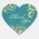 Vielen Dank Siegel - Aquamarine und goldene Blumen Herz-Aufkleber
