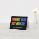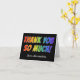 Dieses positive Dankeschön-Kartendesign beinhaltet die Nachricht "DANK YOU SO VIECH!", mit den Buchstaben, die ein Regenbogenspektrum wie Muster haben, auf einem schwarzen Hintergrund. Auf der Vorderseite befindet sich auch ein benutzerdefinierbarer Absendername. Im Inneren gibt es eine personalisierte Danksagung. Eine solche Karte könnte dazu verwendet werden, jemandem zu danken, der etwas Besonderes getan hat oder vielleicht an einer Veranstaltung wie einer Hochzeit, einem Jubiläum-Party oder einer Geburtstagsparty teilgenommen hat.