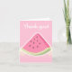 Ein niedliches, einfaches Design einer rosa Wassermelone-Scheibe, mit weißem Text darüber, der "Danke" sagt. Der Hintergrund ist eine solide, pastellfarbene Rosa, die sich in ein rosafarbenes Muster aufteilt. Sehr süß, hübsch und mädchenhaft. Ideal für diejenigen, die Wassermelonen und Obst mögen.