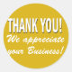Vielen Dank Wir schätzen Ihr Geschäft in weiß auf goldenem Hintergrund, erhältlich in Knopf, Aufkleber, Magnet. Mitarbeiter tragen den Knopf, um Ihren Kunden zu danken und lassen, dass sie wissen, dass sie auch geschätzt werden, wenn Sie zu beschäftigt sind, um es jeder Person zu sagen. Oder verwenden Sie den Aufkleber auf Ihren Rechnungen oder andere besondere Korrespondenz.