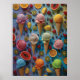 Vielfalt an Eissorten auf einem farbenfrohen Hintergrund