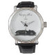 Uhr, Klassische Damenuhr mit schwarzen Lederarmband