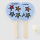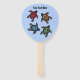 Dieser Handfan ist blau mit vier abstrakten, schwarzen Schildkröten mit farbenfrohen Markierungen auf den Muscheln in Rot, Gelb, Blau und Grün. Passen Sie Ihren Text auf der Vorder- und Rückseite mit der Vorlage an.