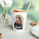 Eine ganz einfache 4. Geburtstagsveranstaltung mit einem eigenen Foto in Bogenform und den Worten "Vier" über dem Gipfel.