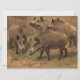 Dieses Design zeigt ein Gemälde von Rosa Bonheur (1822-1899), einer französischen Künstlerin, die am besten als Tiermalerin bekannt war. Es zeigt vier Wildschweine, die auf einer Wiesen-Landschaft verschachtelt sind. Diese Tiere sind mit den Schweinen verwandt, die in landwirtschaftlichen Betrieben domestiziert wurden. Die Eber schnarchen mit ihren langen Schnarchen glücklich. Sie haben auch aufrechte Ohren, haarige Schwänze und gekalkte Hosen.