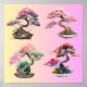 Vier Bonsai-Bäume glücklich pastellfarben erbauend