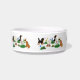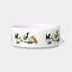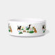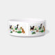 Vier Cavalier-Spaniels in einem Bereich von Blume Napf