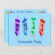 Vier mehrfarbige dreidels, die Nonne, gimel, hei und Schienbein zeigen. Nes Gadol Hayah Täuschung. Ein Chanukah Entwurf. Kundengerechte Chanukah Party Einladungen--fügen Sie hinzu und fertigen Sie mit Ihren Informationen besonders an.