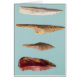 Prähistorische vier Feuerstein-Werkzeuge, oberer paläolithischer Zeitraum, 35000-10000 (Feuerstein) BC gelegen am Musee DES Antiquites Nationales, St. Germain-en-Laye, Frankreich.