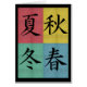 Hübsche, bunte Grußkarte, welche die vier Jahreszeiten im japanischen Kanji mit vier Hintergrundfarben darstellen jede Jahreszeit zeigt. Die schwarze Kontur kann durch das Klicken auf dem besonders anfertigen Knopf leicht geändert werden. Besichtigen Sie den Speicher für zusammenpassende Geschenke.