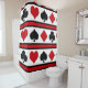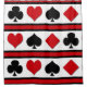 Set der Anzug-Symbole auf der Karte, abgeschieden auf schwarz, rot und weiß gestreiftem Hintergrund