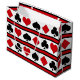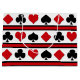 Set der Anzug-Symbole auf der Karte, abgeschieden auf schwarz, rot und weiß gestreiftem Hintergrund