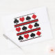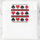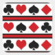 Set der Anzug-Symbole auf der Karte, abgeschieden auf schwarz, rot und weiß gestreiftem Hintergrund