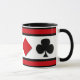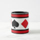 Set der Anzug-Symbole auf der Karte, abgeschieden auf schwarz, rot und weiß gestreiftem Hintergrund
