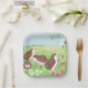 Vier kleine Igel auf der blühenden Wiese Pappteller
