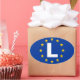VIER luxemburgische "L" Europäische Gewerkschaft Flag Oval Stickers. Luxemburgs Code für die internationale Fahrzeugregistrierung mit EU-Flagge im Hintergrund