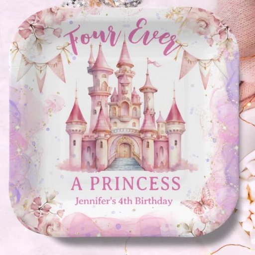 Vier Mal pro Princess Pink Castle Girl 4. Geburtst Pappteller