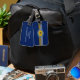 Vier Streifen Monogramm Blau und Gold ID207 Gepäckanhänger