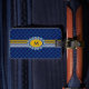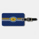 Dieses stilvolle Gepäckanhänger in Blau und Gold zeichnet sich durch ein subtiles geometrisches Muster aus, das durch vier schmale, waagerechte Streifen überragt wird, die ein dekoratives Etikett für Ihr Monogramm enthalten. Verwenden Sie die beiliegende Vorlage, um Ihren Namen oder Ihr Monogramm hinzuzufügen. Suchen Sie ID207 um weitere Produkte mit diesem Design zu sehen.
